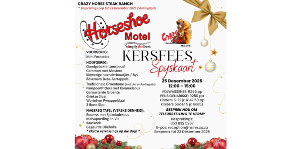 Kom eet Kersdag by die Horseshoe Motel