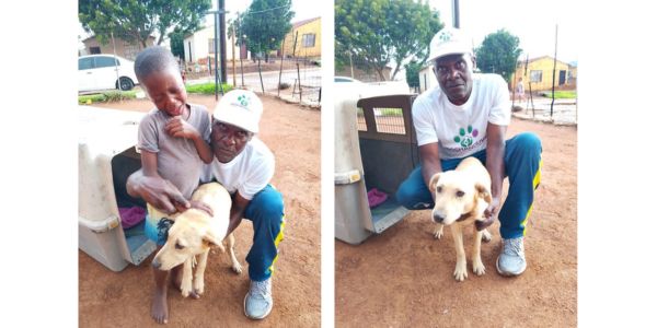 Jong seun in trane toe sy hond verwyder word
