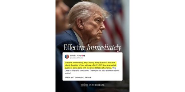 Trump kondig 25%-tarief aan vir lande wat sake met Iran doen