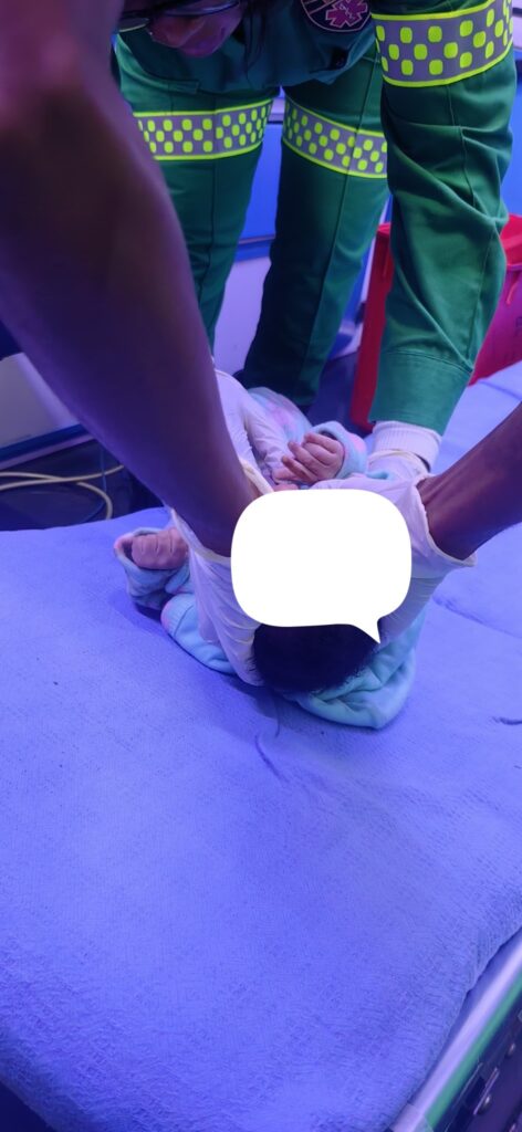 Kort daarna het ’n lid van die publiek na die beamptes gehardloop en gesê hy het vroeër gesien hoe die vrou ’n kind na ’n perseel by ’n herstelwerksentrum dra. Hy het hulle aangemoedig om die taxi te stop. Een van die beamptes het die taxi agternagesit en dit naby die Hammanskraal-polisiestasie tot stilstand gebring. Intussen het die gemeenskapslid na die perseel teruggekeer waar hy ’n baba ontdek het wat in ’n gat versteek en onder die grond begrawe was, maar nog geleef het.