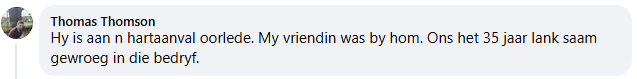 Verskeie vriende het reeds boodskappe van medelye op sosiale media geplaas.
