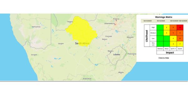 Daar is ‘n moontlikheid van skade aan infrastruktuur, onderbreking van munisipale en noodsaaklike dienste, sowel as hael en oorstromings.