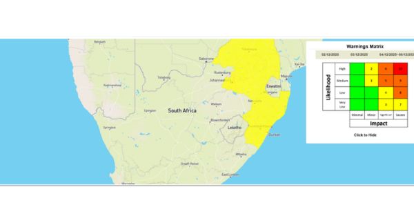 ‘n Geel vlak 2-waarskuwing vir donderstorms is vir vandag vir dele van Limpopo, Mpumalanga en KwaZulu-Natal uitgereik. Ook hier is ‘n moontlikheid van oorstromings, sterk wind, hael, skade aan infrastruktuur en bome wat omval.