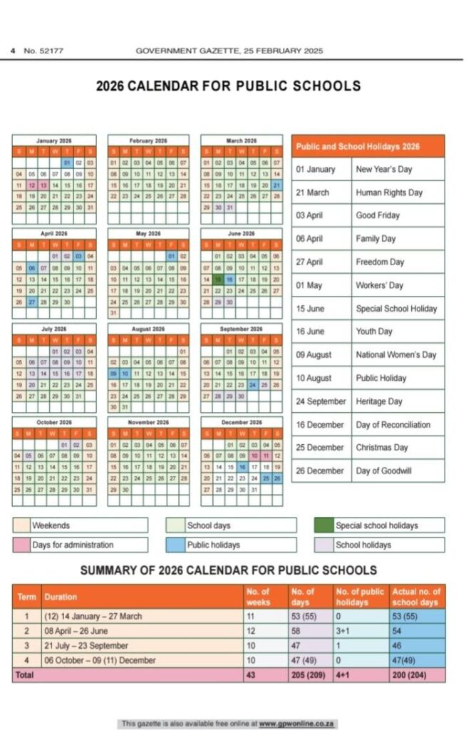 Volgens die amptelike 2026-skoolkalender is hierdie dae gewone skooldae en moet leerlinge normaalweg by skole aanmeld vir onderrig. Die departement sê dié datums val binne die tweede skooltermyn, wat van 8 April tot 26 Junie 2026 strek. Die departement waarsku dat vals inligting op sosiale media versprei word wat beweer dat skole gedurende dié tyd gesluit sal wees. Hulle sê dié bewerings is onwaar en kan leer en beplanning ontwrig.