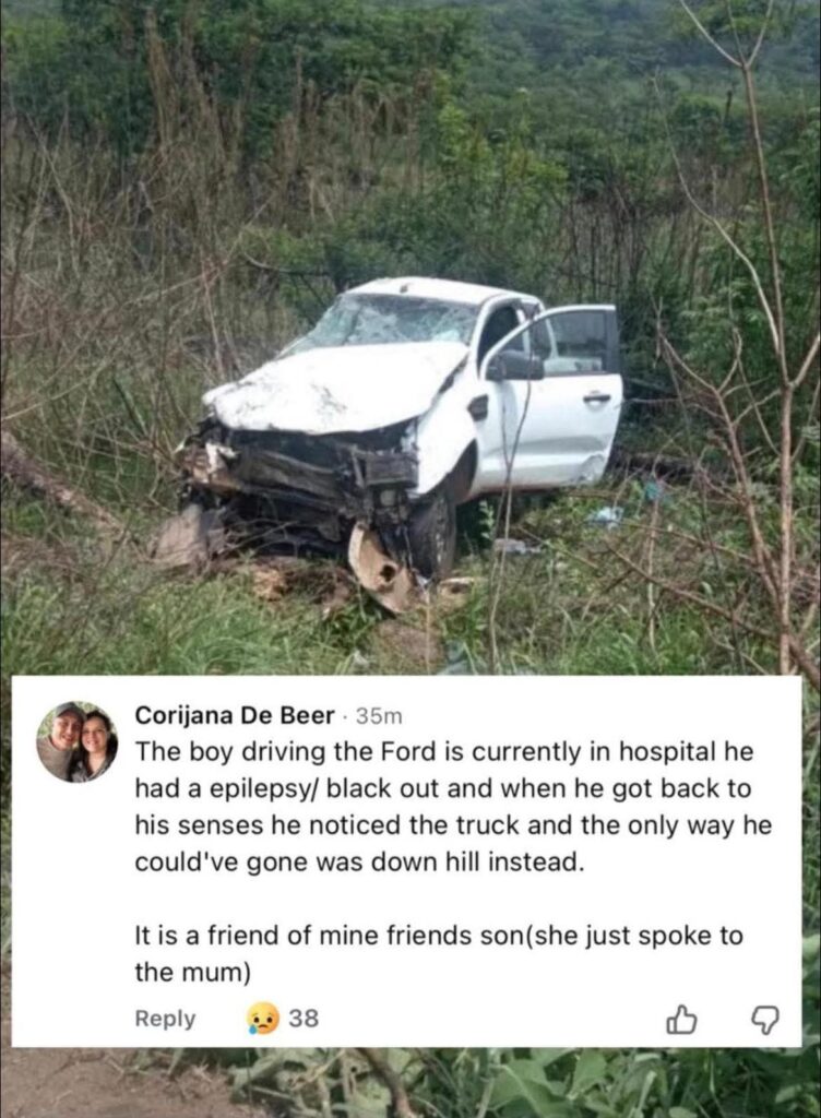 Volgens inligting wat deur Nuusflits ontvang is, het die bestuurder glo ‘n epileptiese aanval gehad, wat tot die ongeluk gelei het. Dit is onbekend wie die video gemaak het.