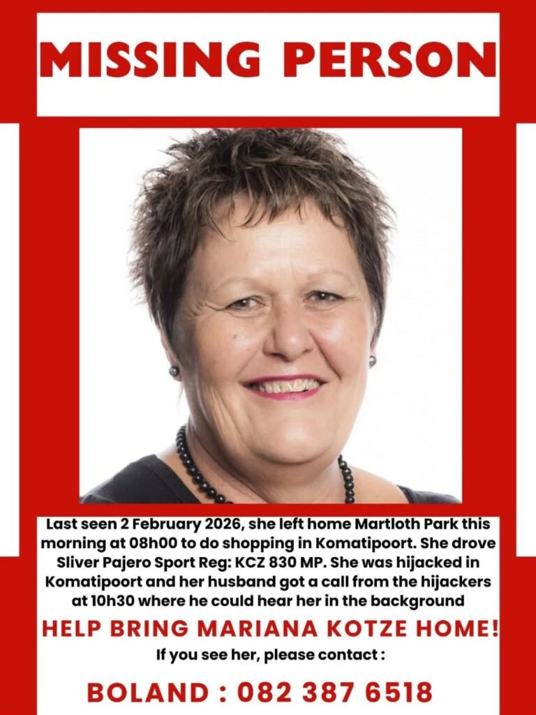 MPUMALANGA. – Mariana Kotze, Kokkedoor 3-deelnemer en oud-Standerton-inwoner, het Maandagoggend vermis geraak nadat sy glo in Komatipoort gekaap is.